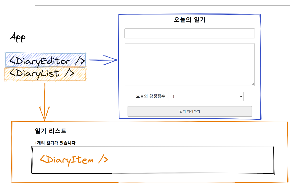 DiaryEditor와 DiaryList는 현재 같은 레벨에 있다.