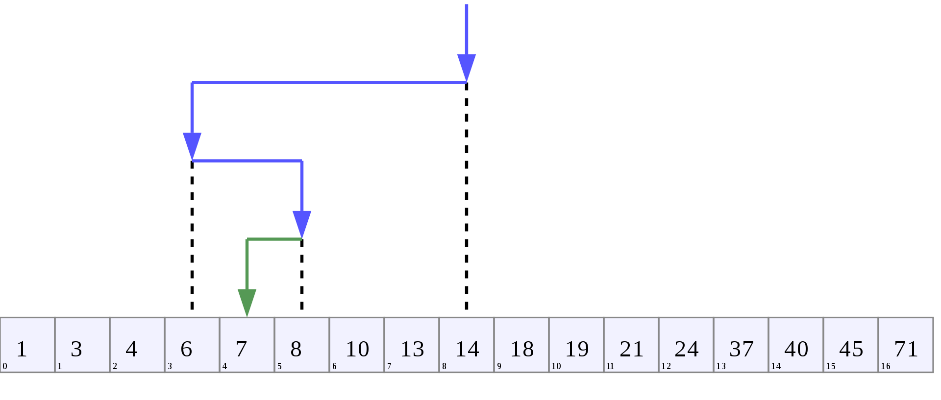 2. 찾고자 하는 값이 중간값보다 작은지 큰지 확인합니다.